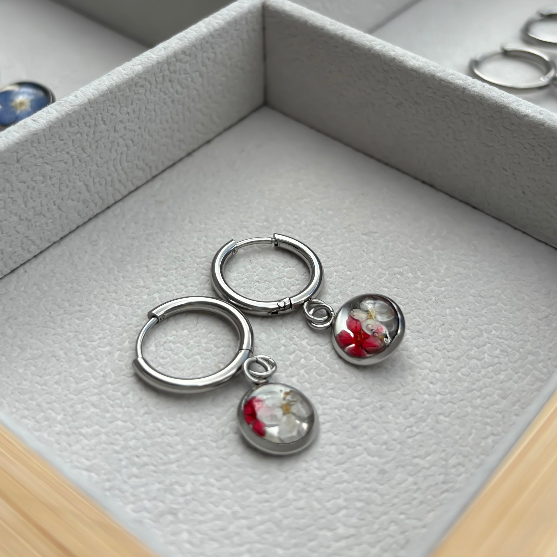 Het gebruik van stainless steel zorgt ervoor dat de oorbellen niet verkleuren. Tevens zijn de oorbellen nikkelvrij. Het is aan te raden om niet te gaan douchen en zwemmen met de oorbellen en tevens wordt langdurig zonlicht afgeraden om het hars te beschermen.